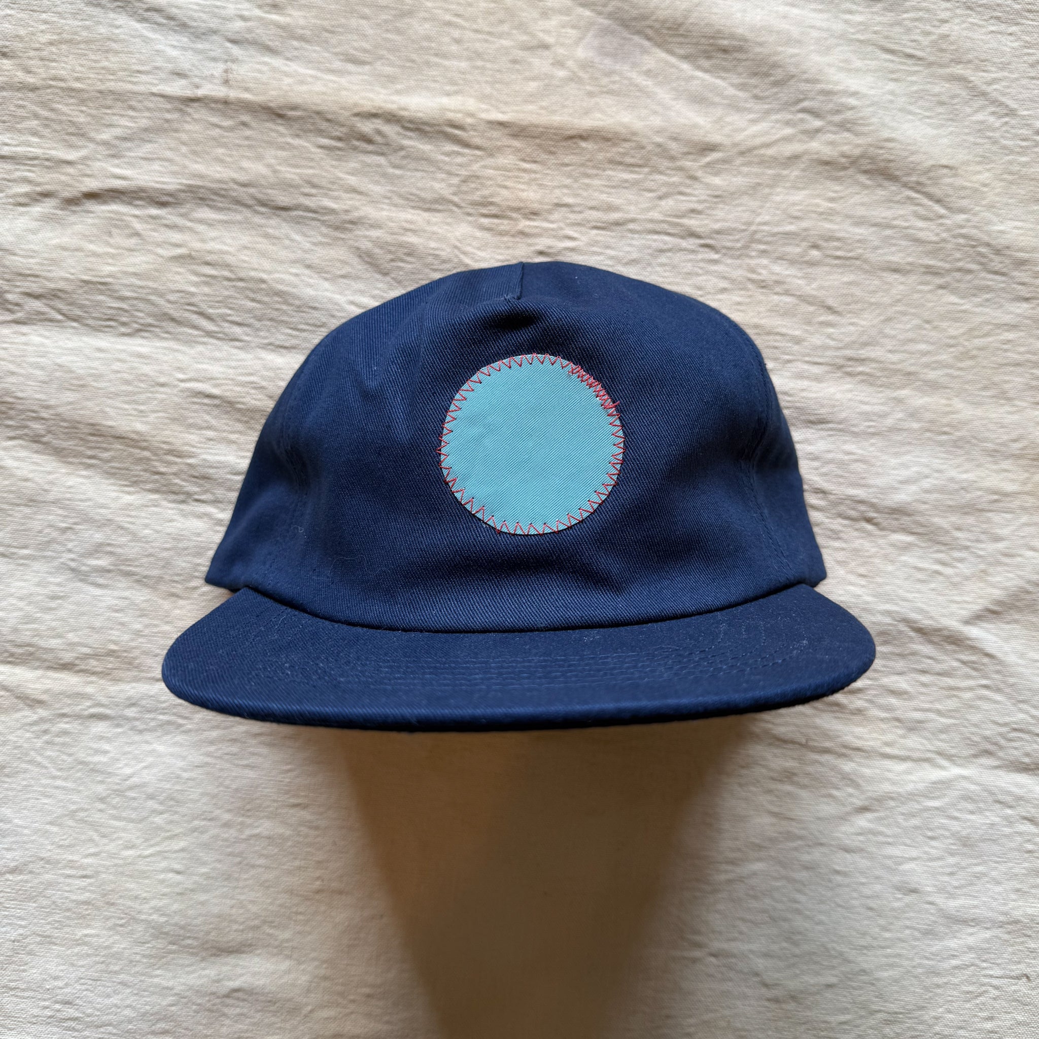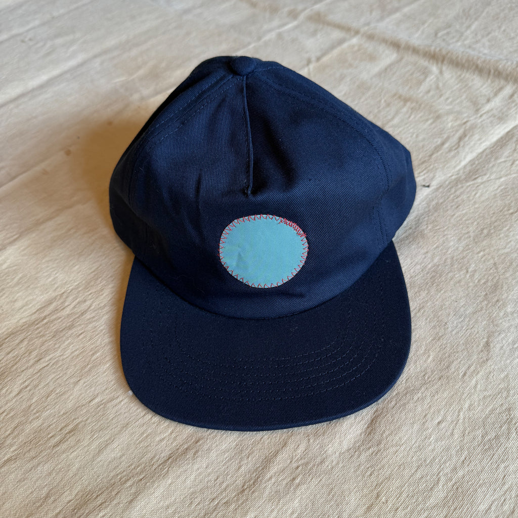This navy lightly structured 5-panel, cotton, snapback cap comes with a yacht dot patch appliqué.