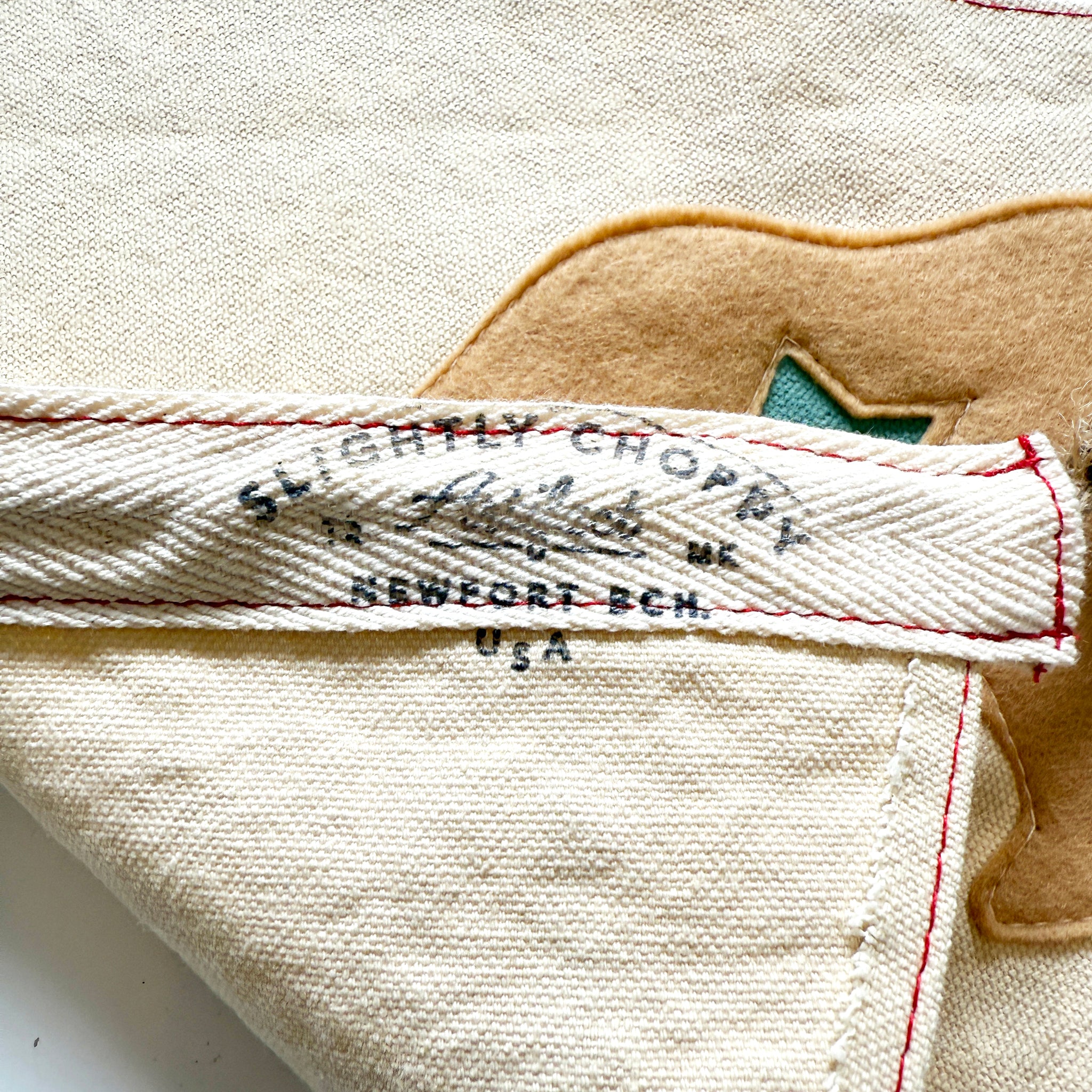 This limited edition hand-made flag uses a paint splattered natural canvas, painted and sewn felt appliqué. Each flag is topped with a natural twine + twill tape and stamped with Slightly Choppy branding.