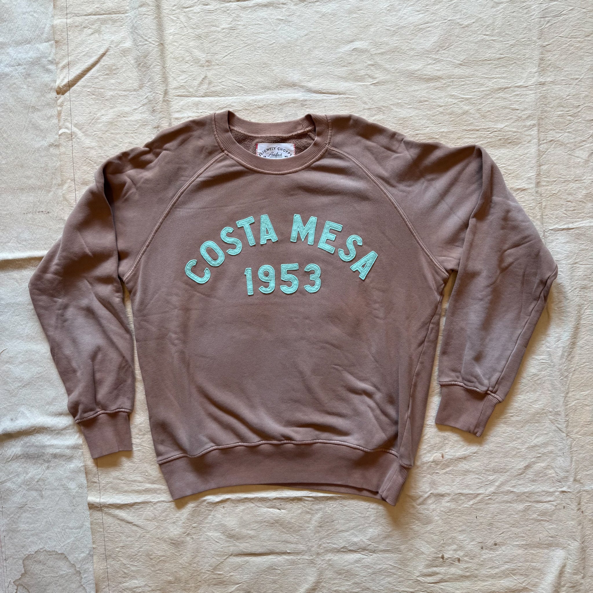 This is a newly developed, tobacco brown sweatshirt with aqua felt appliqué.