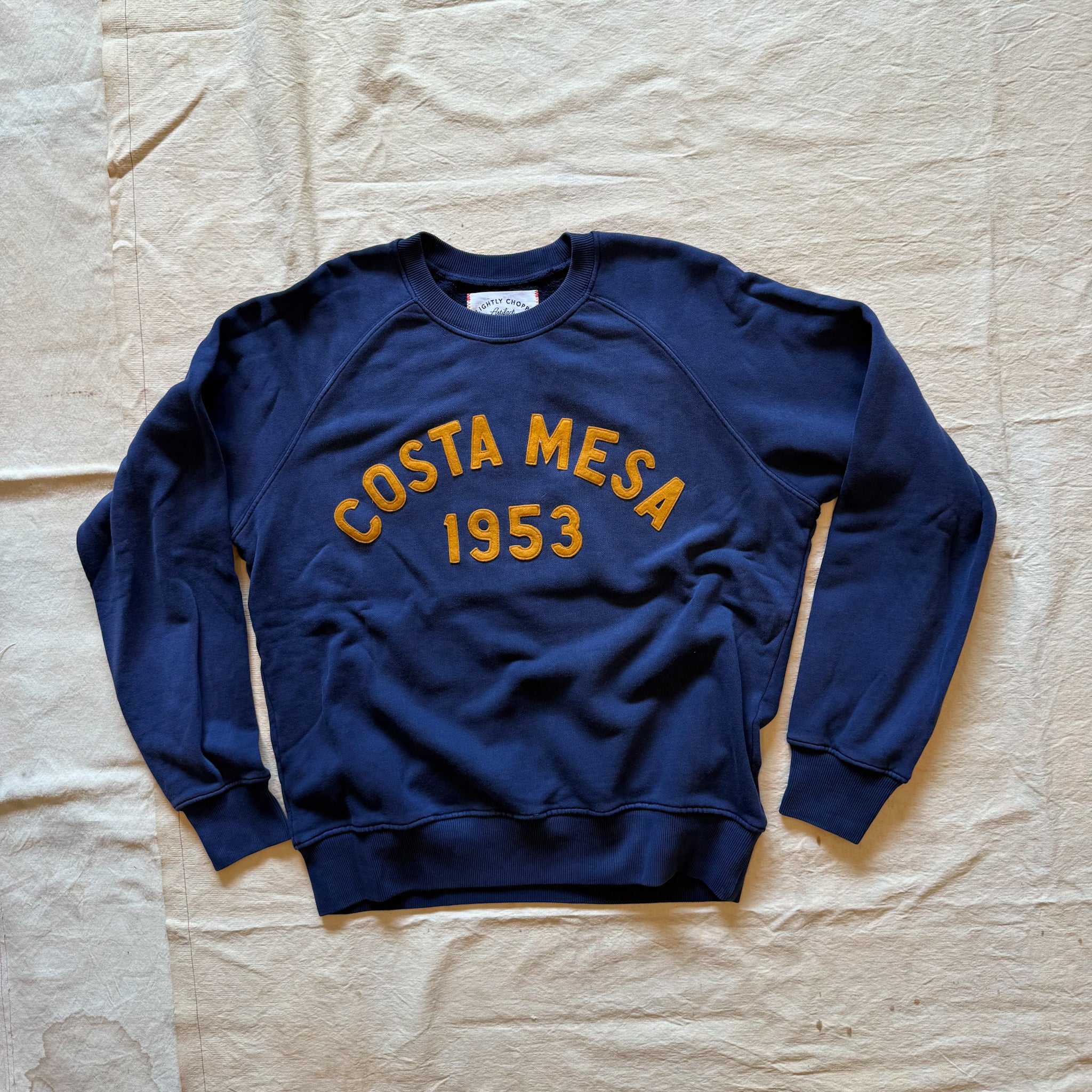 This is a newly developed, navy sweatshirt with golden-yellow felt appliqué.