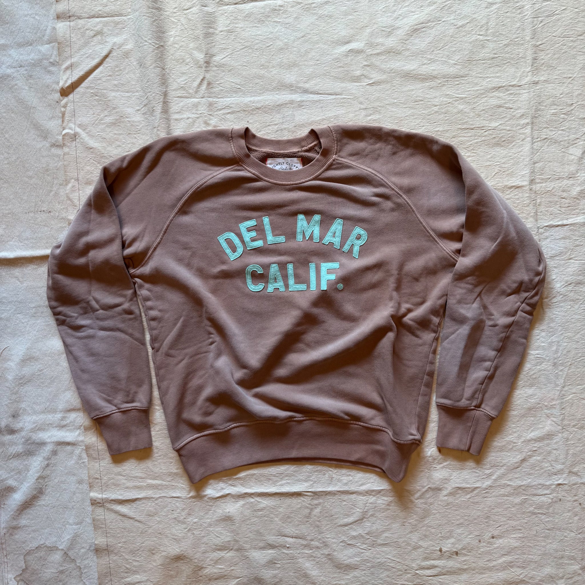 This is a newly developed, tobacco brown sweatshirt with aqua felt appliqué.