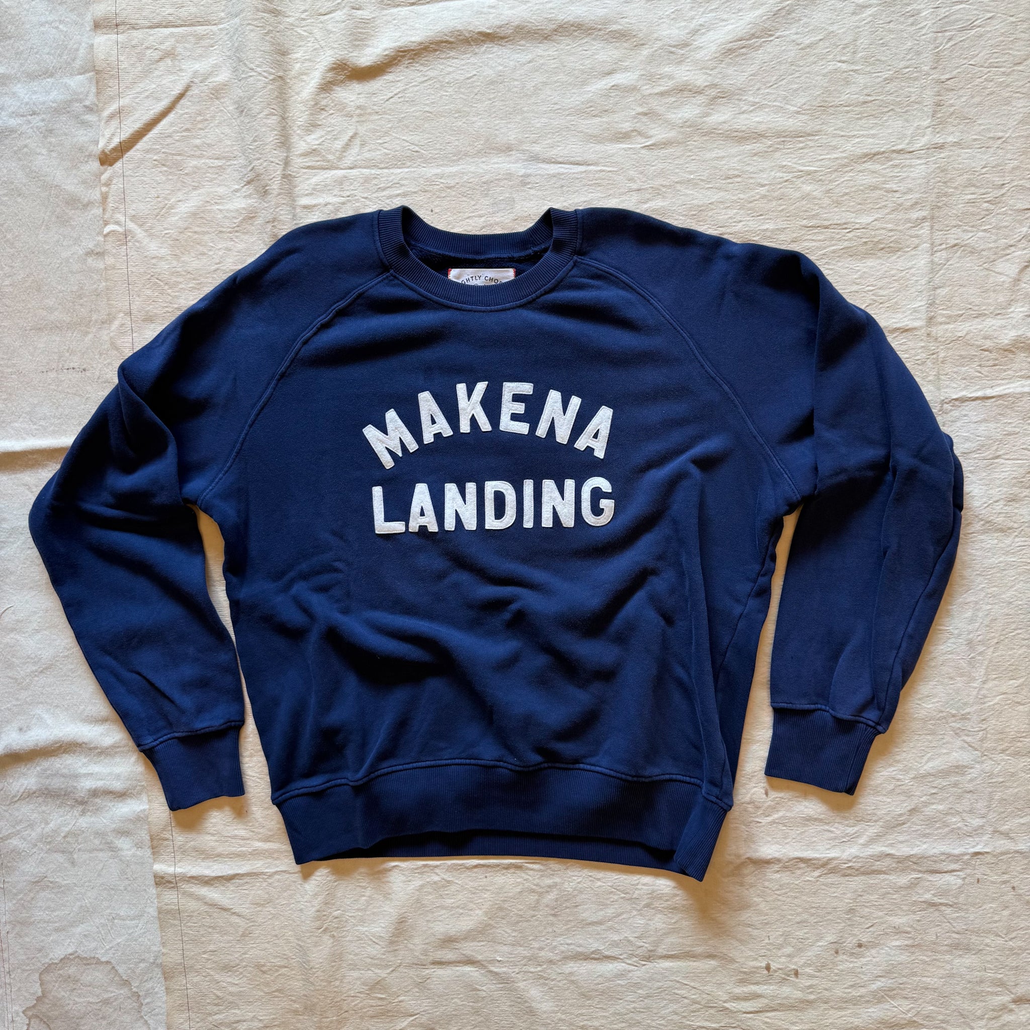 This is a newly developed, navy sweatshirt with off-white felt appliqué.