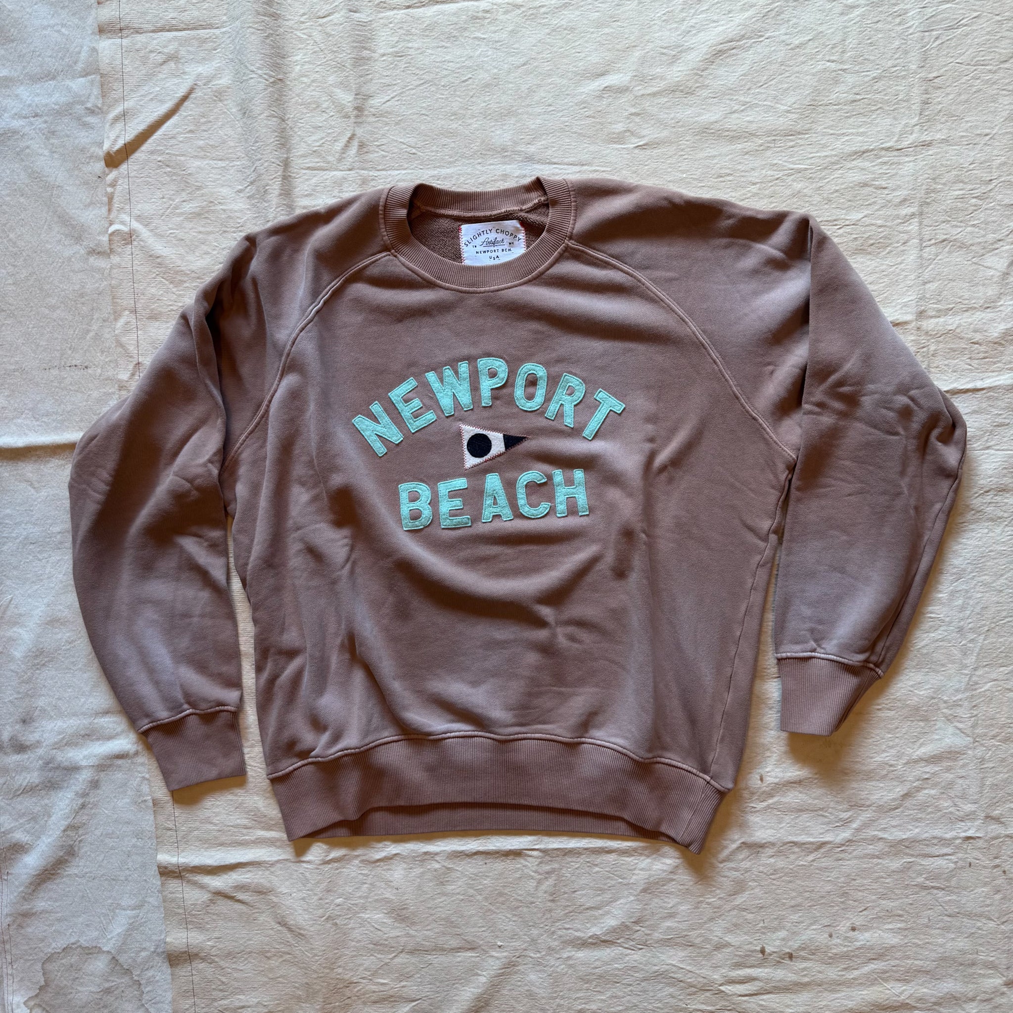 This is a newly developed, tobacco brown sweatshirt with aqua felt appliqué.
