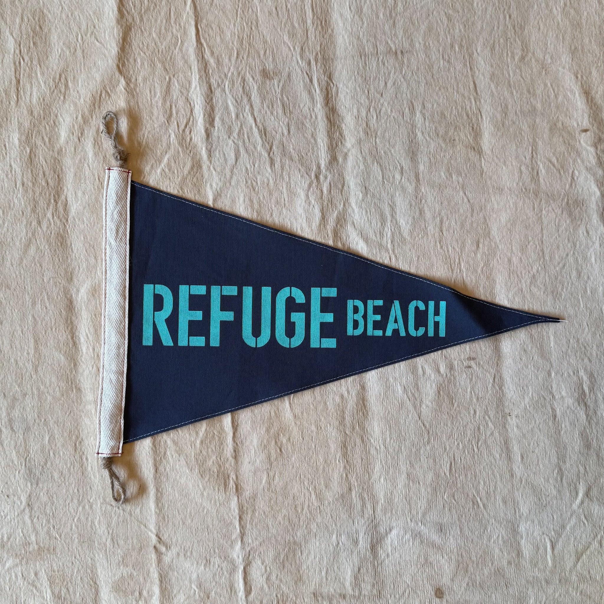 This hand-made flag uses a washed navy canvas with an aqua hand painted script. Each flag is topped with a natural twine + twill tape and stamped with Slightly Choppy branding.